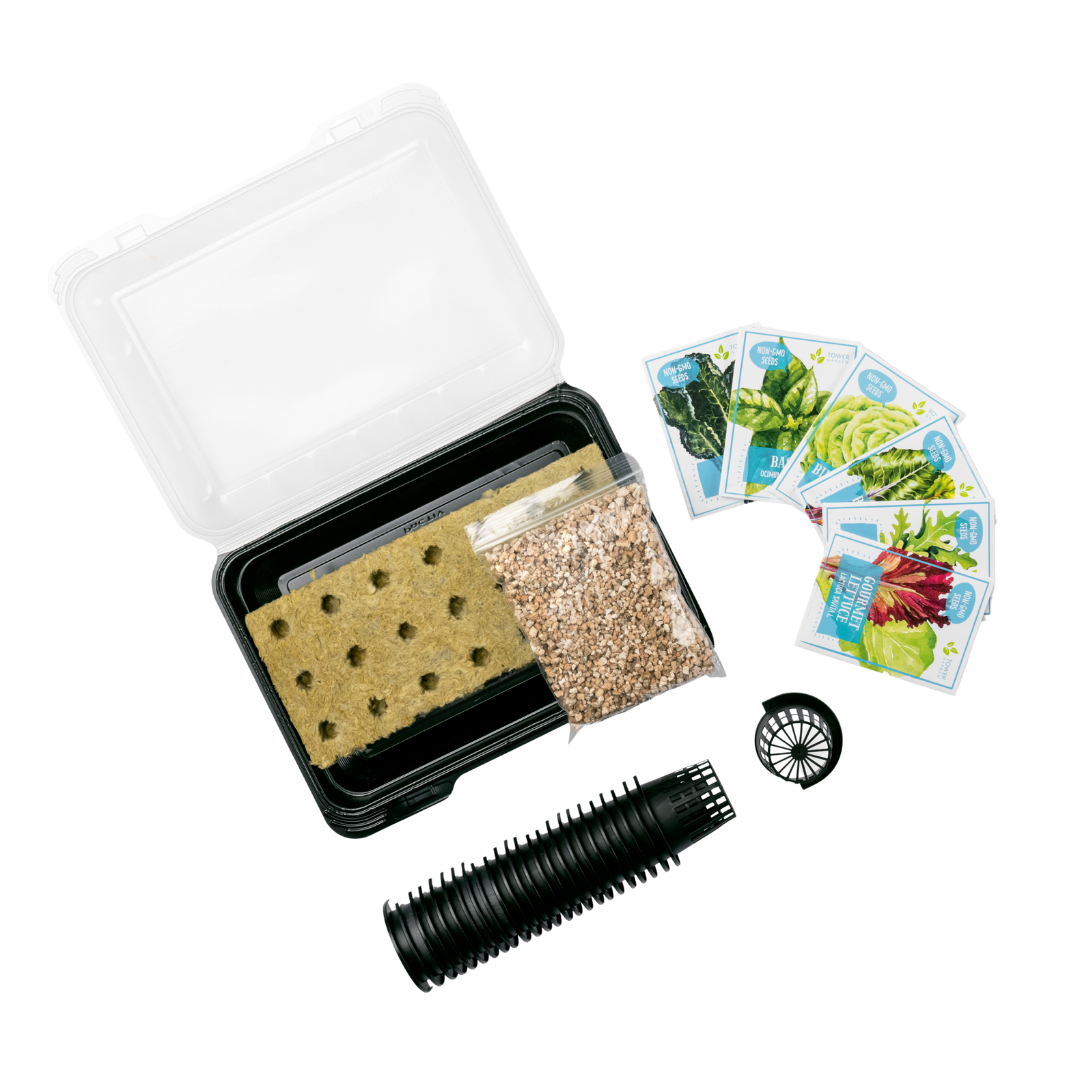This kit—which we ship with every Tower Garden Growing System—comes with a variety of accessories to successfully start, plant, and grow crops from seed.